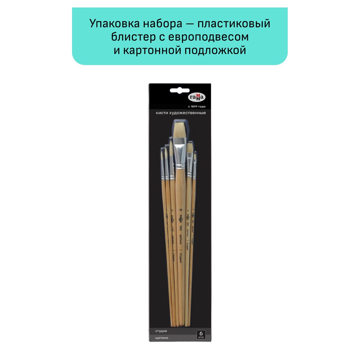 Набор художественных кистей щетина Гамма "Студия", 6шт., круглые №2, 6, 10 плоские №2, 6, 10, блистер, европодвес