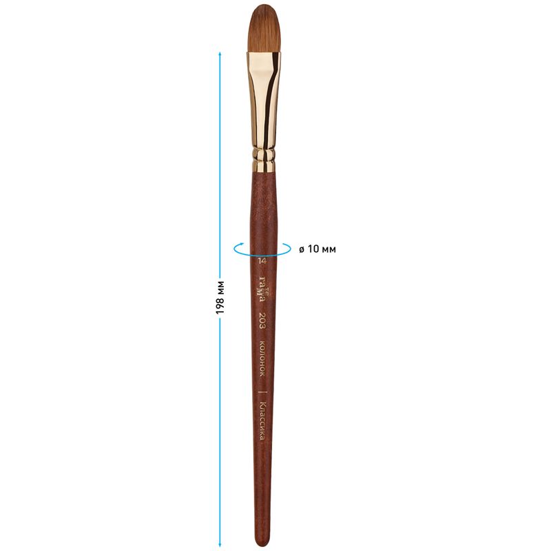 Кисть художественная колонок Гамма "Классика", плоскоовальная №14