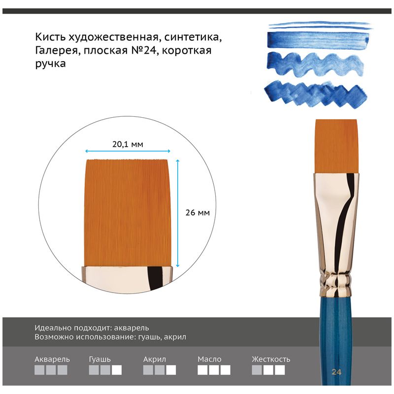 Кисть художественная синтетика Гамма "Галерея", плоская №24, короткая ручка