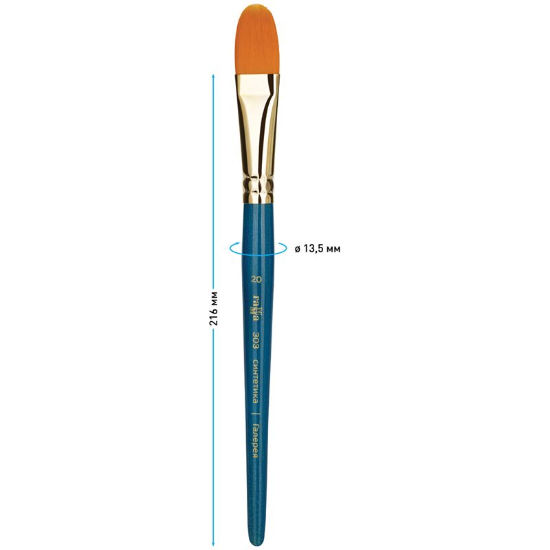Кисть художественная синтетика Гамма "Галерея", плоскоовальная №20, короткая ручка
