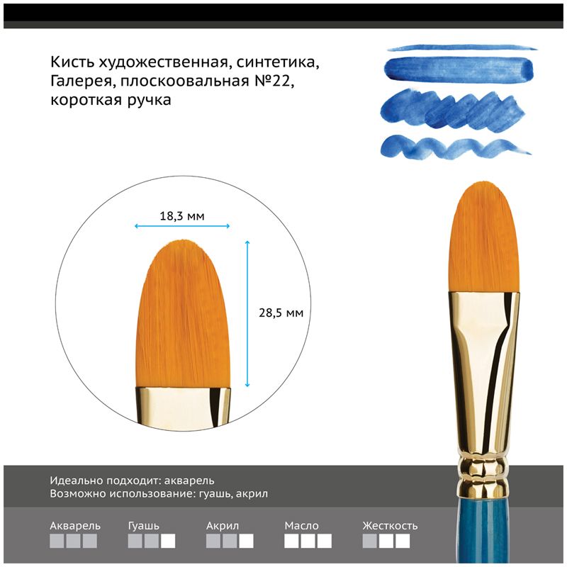 Кисть художественная синтетика Гамма "Галерея", плоскоовальная №22, короткая ручка