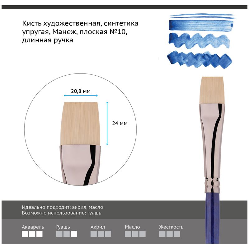 Кисть художественная синтетика упругая Гамма "Манеж", плоская №10, длинная ручка