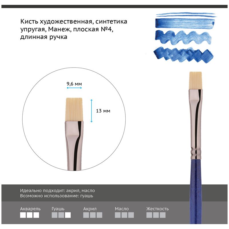Кисть художественная синтетика упругая Гамма "Манеж", плоская №4, длинная ручка