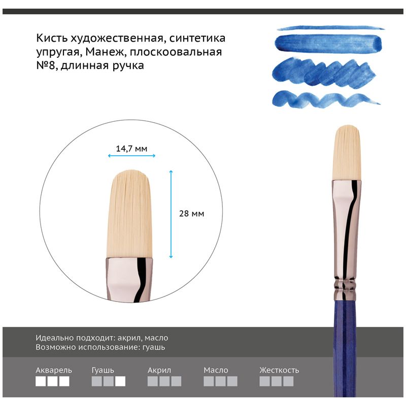 Кисть художественная синтетика упругая Гамма "Манеж", плоскоовальная №8, длинная ручка