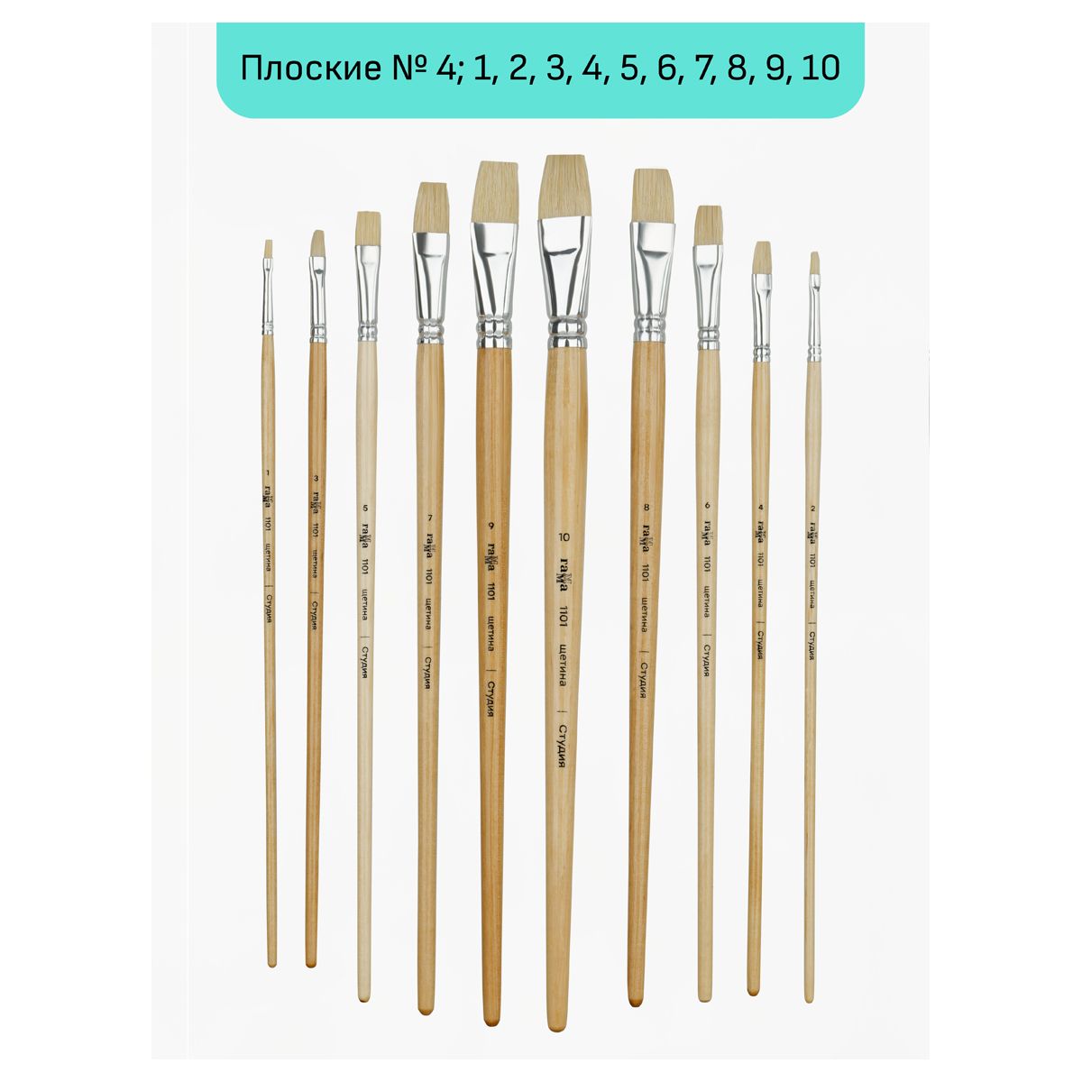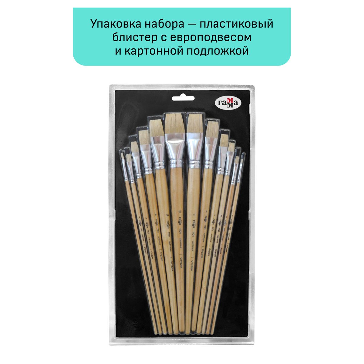 Набор художественных кистей щетина Гамма "Студия", 12шт., плоские №1, 2, 3, 4, 5, 6, 7, 8, 9, 10, 11, 12