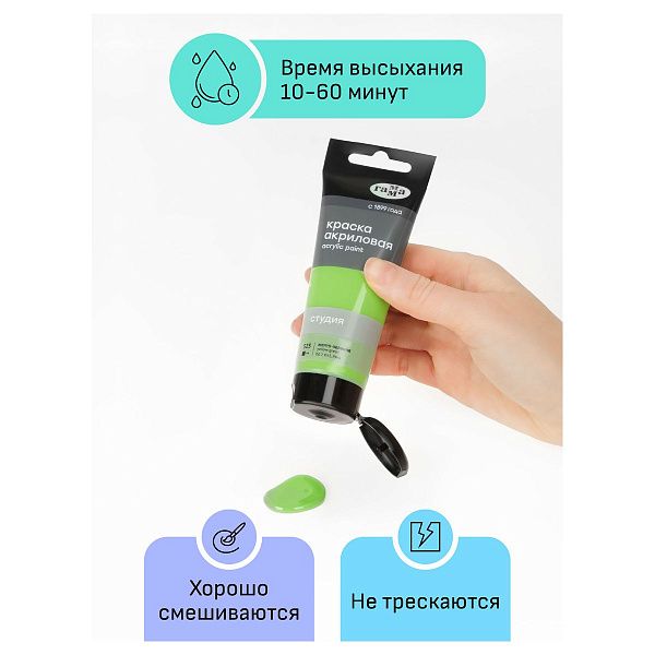 - Формат упаковки — тюбики от 5 до 60 мл удобны для точечного нанесения, большие банки — для студийной работы и закрашивания больших площадей.