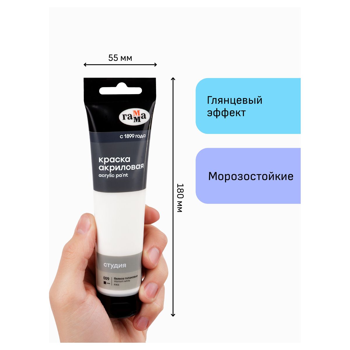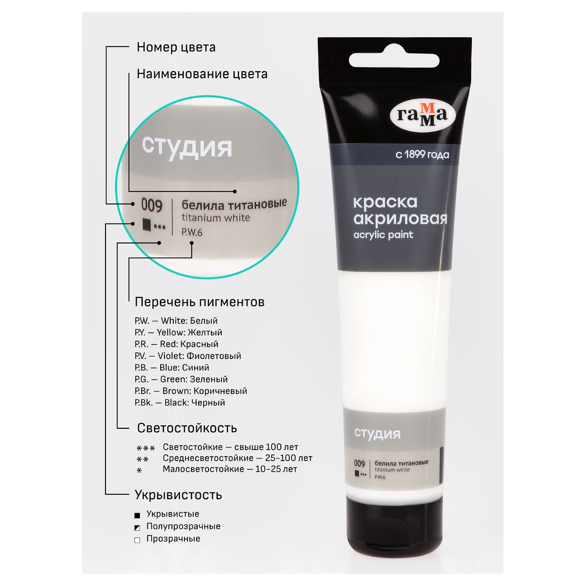 Краска акриловая художественная Гамма "Студия", 110мл, пластиковая туба, белила титановые
