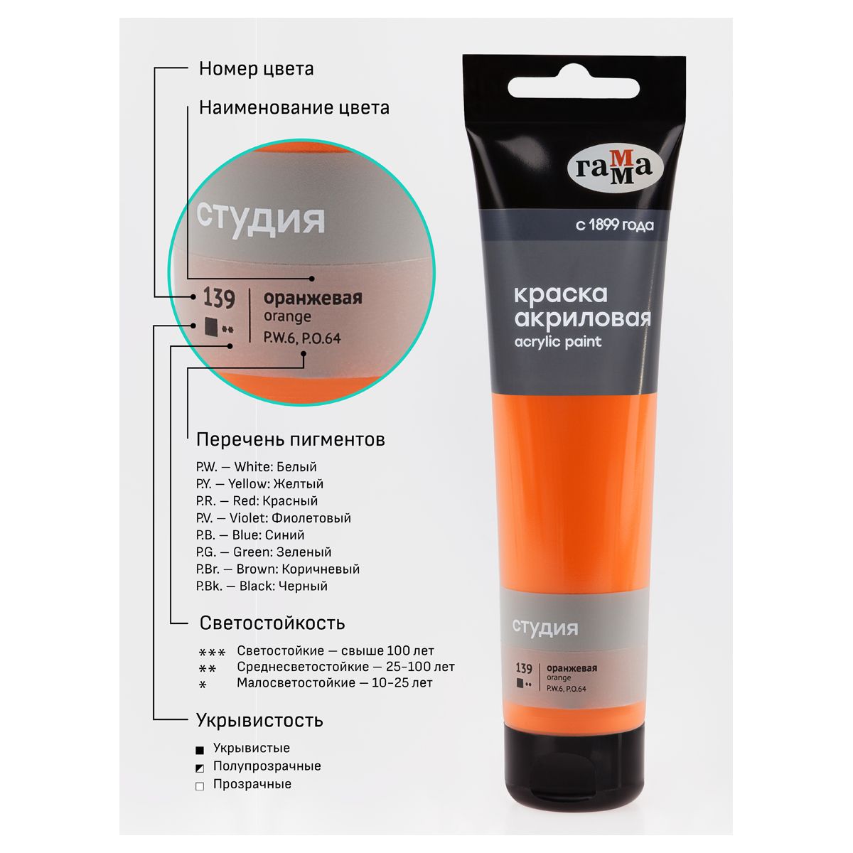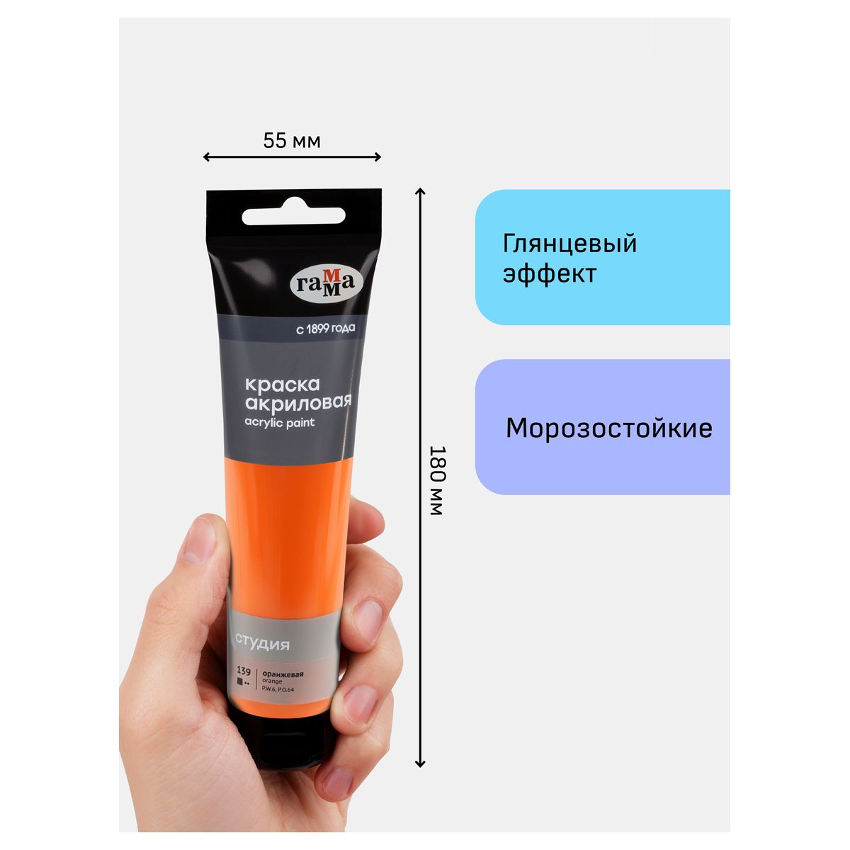 Краска акриловая художественная Гамма "Студия", 110мл, пластиковая туба, оранжевая