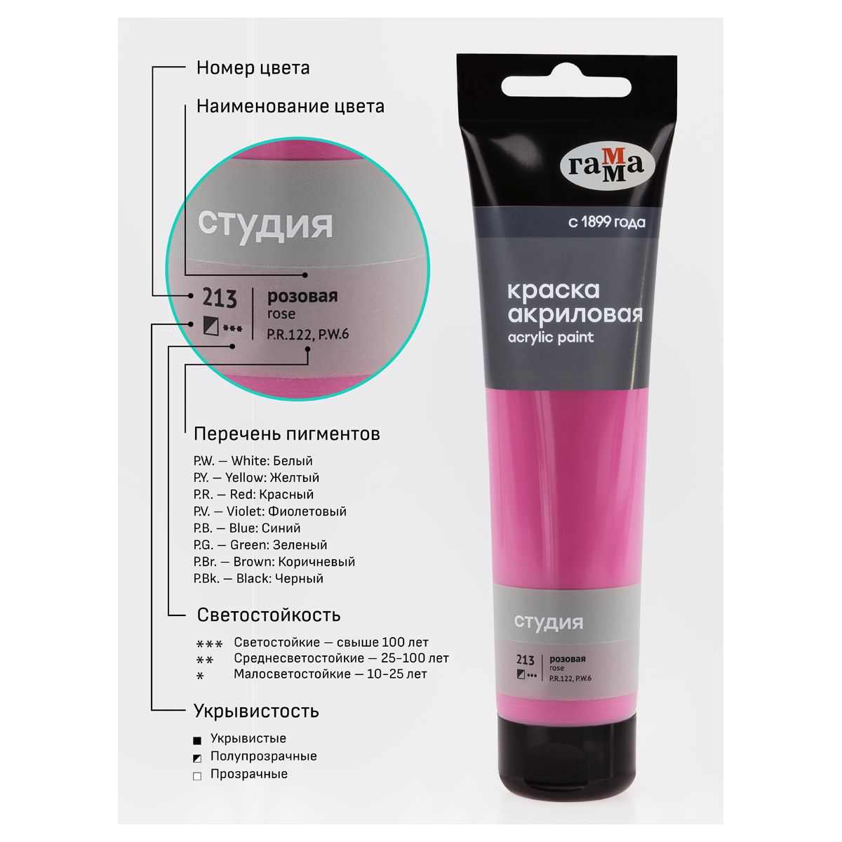 Краска акриловая художественная Гамма "Студия", 110мл, пластиковая туба, розовая
