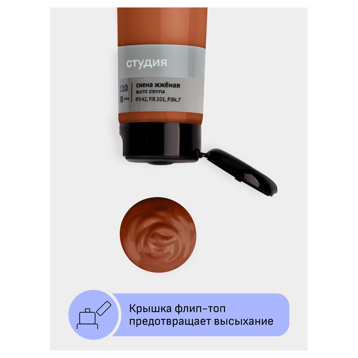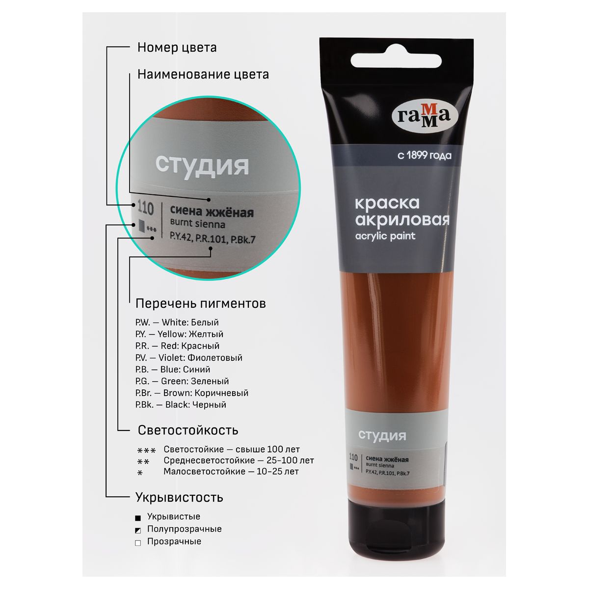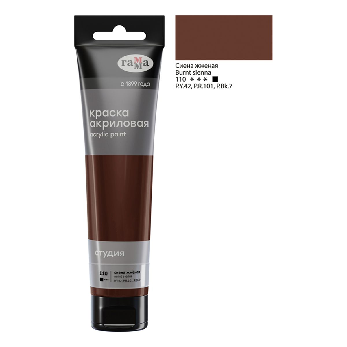 Краска акриловая художественная Гамма "Студия", 110мл, пластиковая туба, сиена жженая