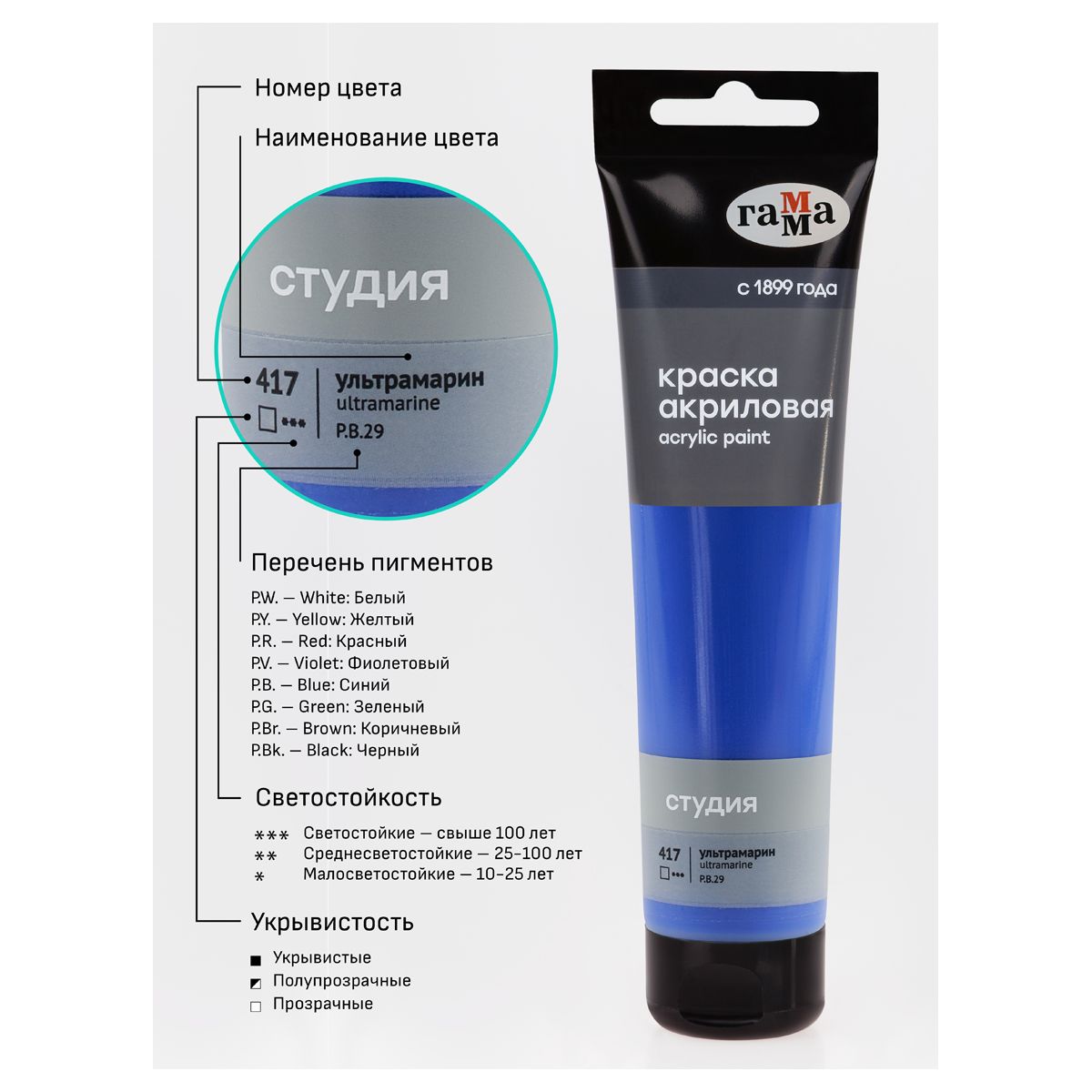 Краска акриловая художественная Гамма "Студия", 110мл, пластиковая туба, ультрамарин