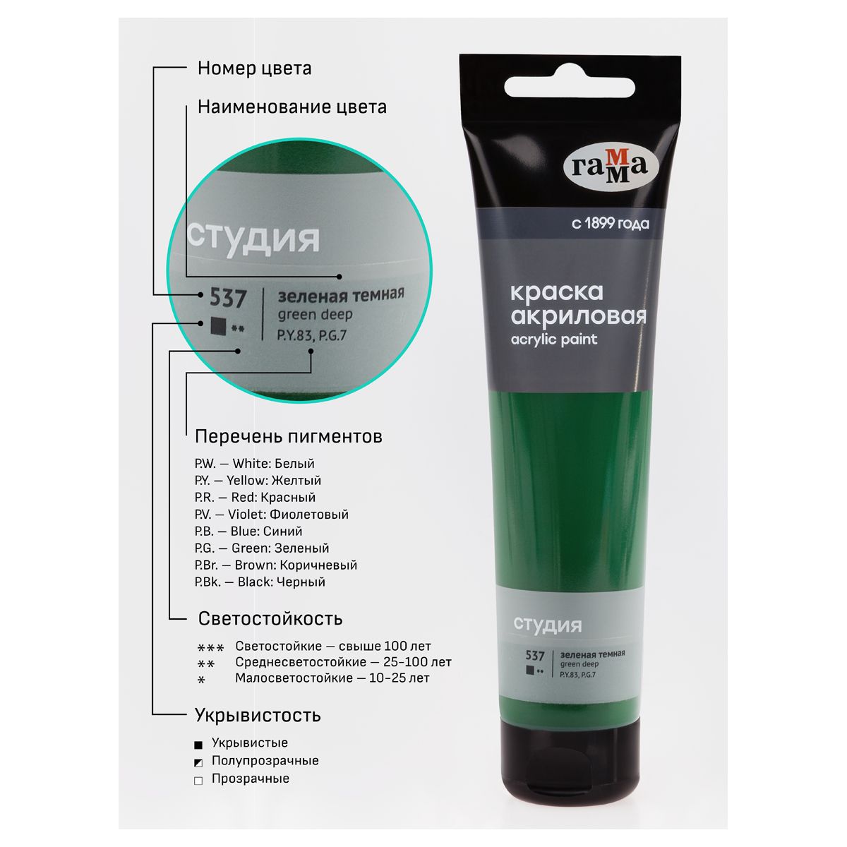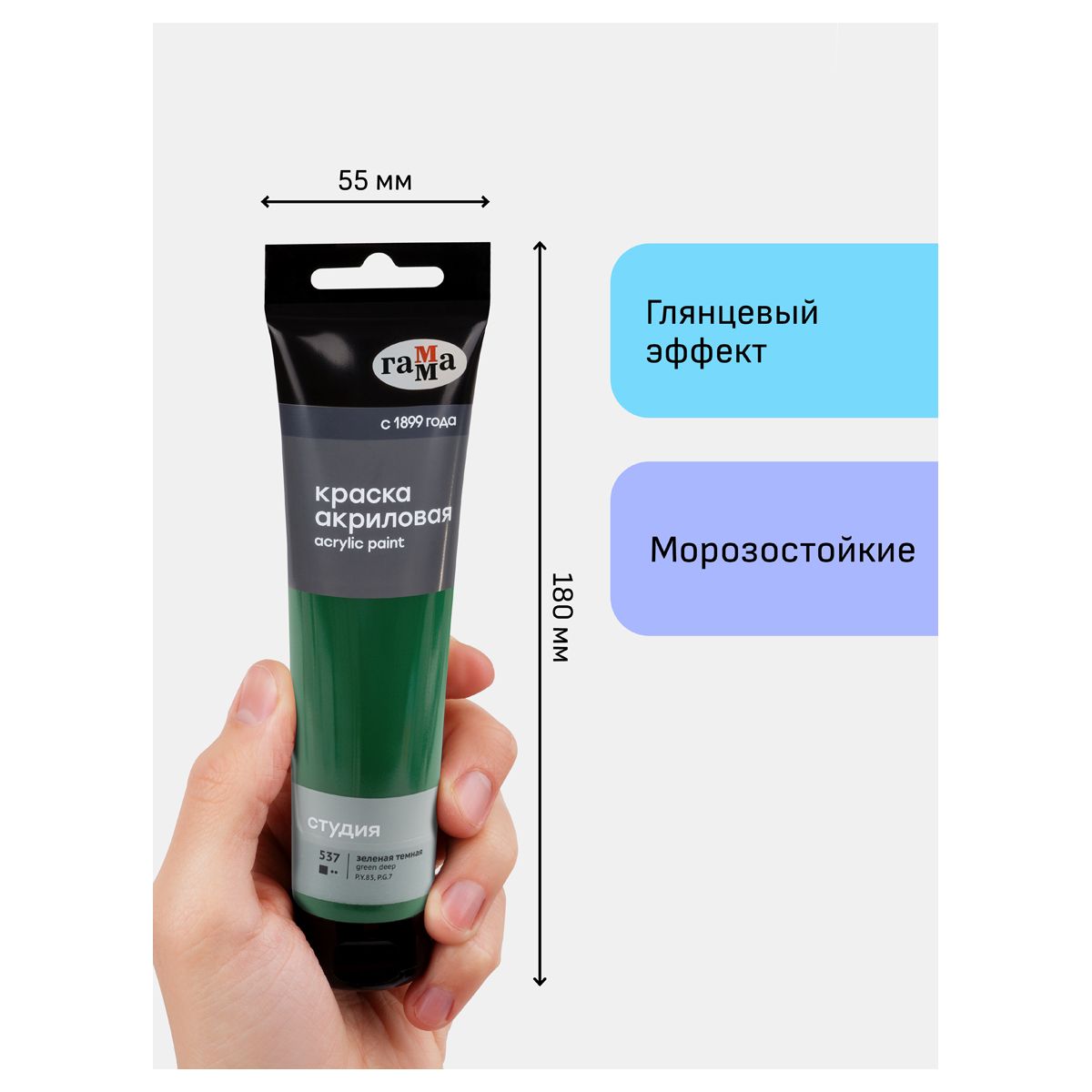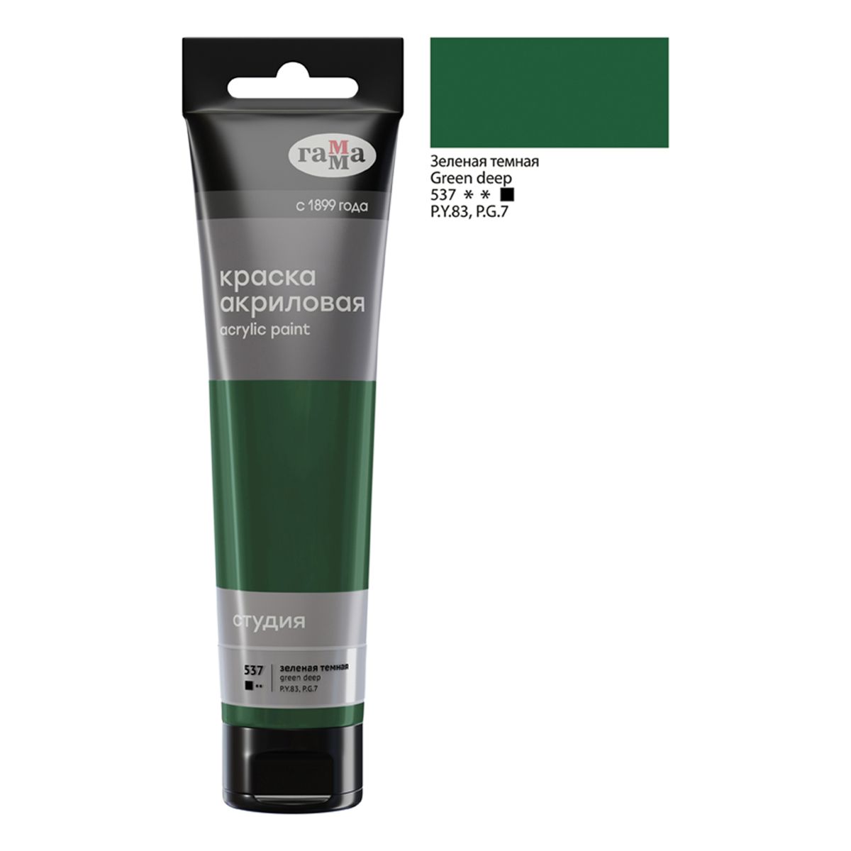 Краска акриловая художественная Гамма "Студия", 110мл, пластиковая туба, зеленая темная