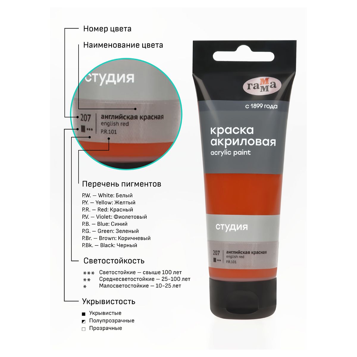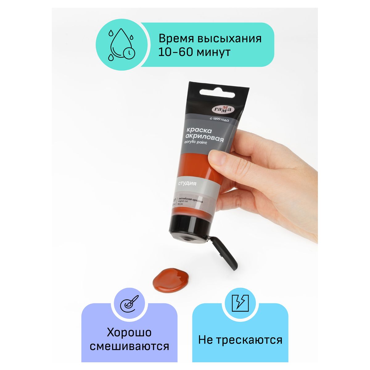 Краска акриловая художественная Гамма "Студия", 75мл, пластиковая туба, английская красная