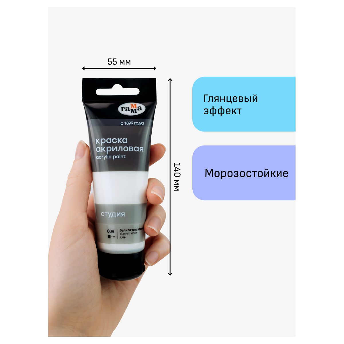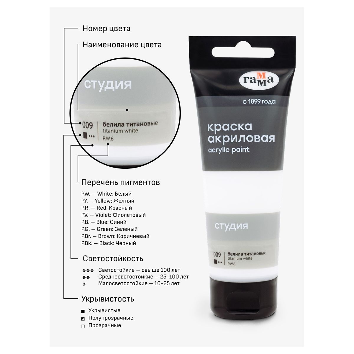 Краска акриловая художественная Гамма "Студия", 75мл, пластиковая туба, белила титановые
