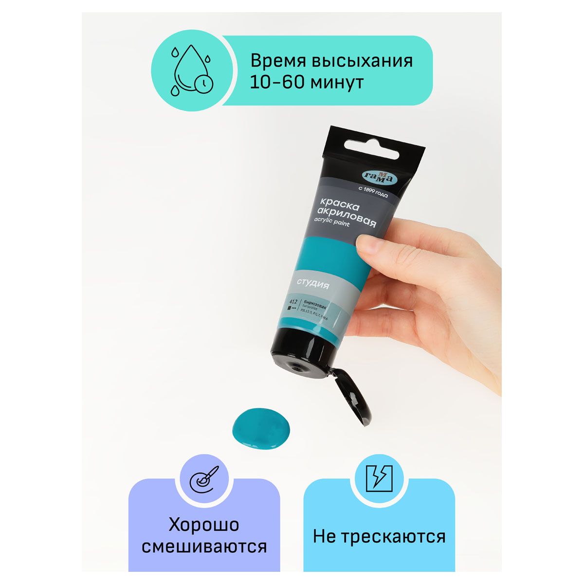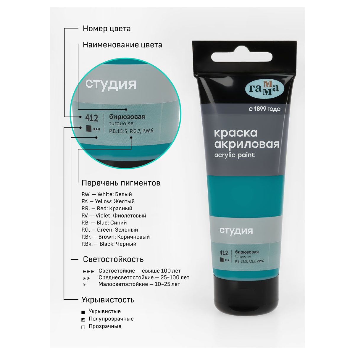 Краска акриловая художественная Гамма "Студия", 75мл, пластиковая туба, бирюзовая