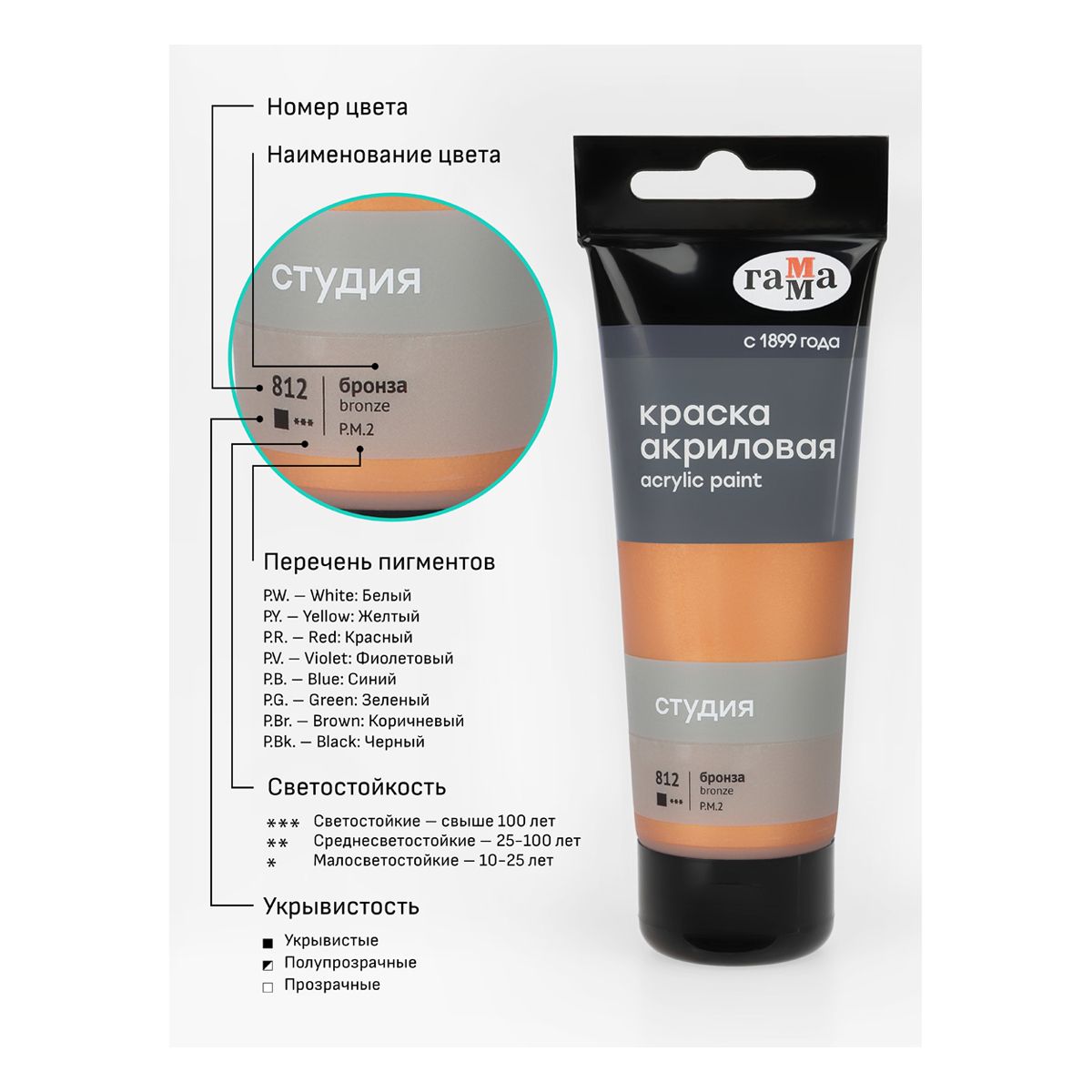 Краска акриловая художественная Гамма "Студия", 75мл, пластиковая туба, бронза