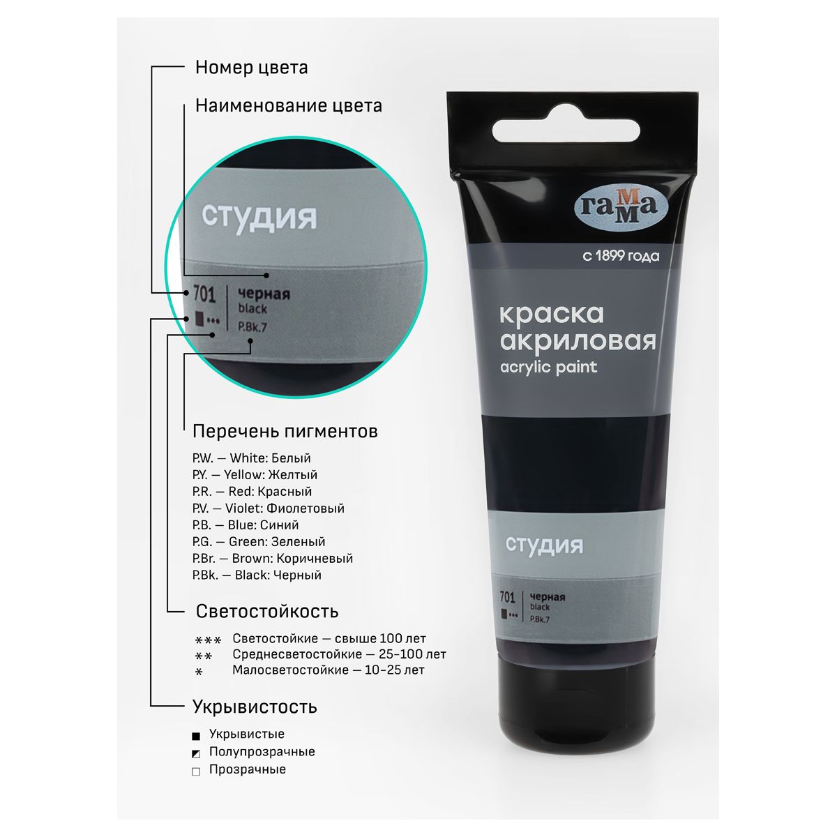 Краска акриловая художественная Гамма "Студия", 75мл, пластиковая туба, черная