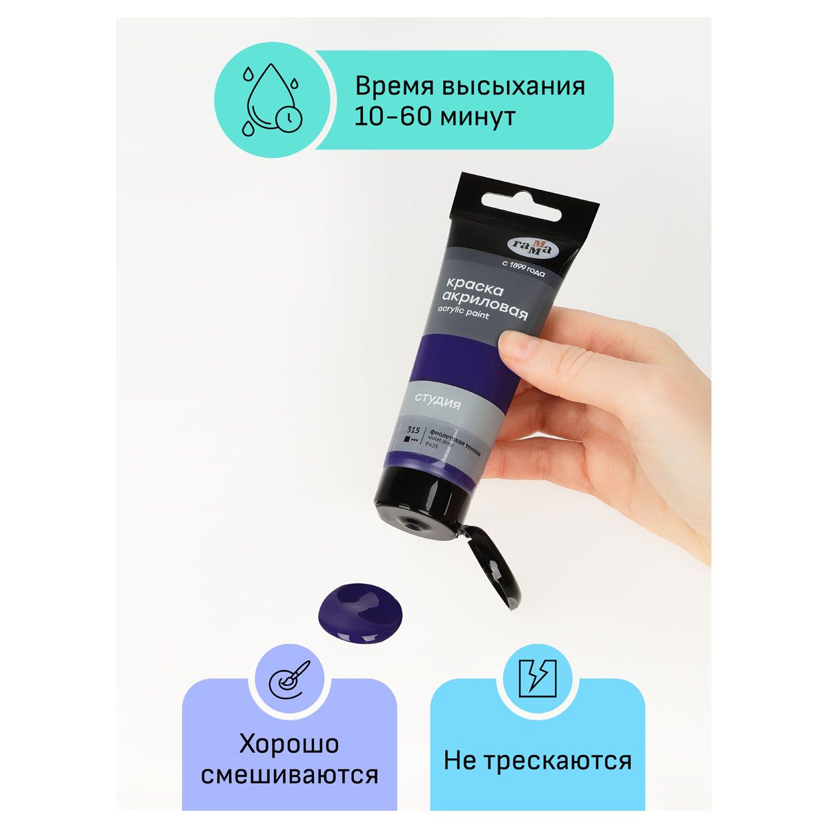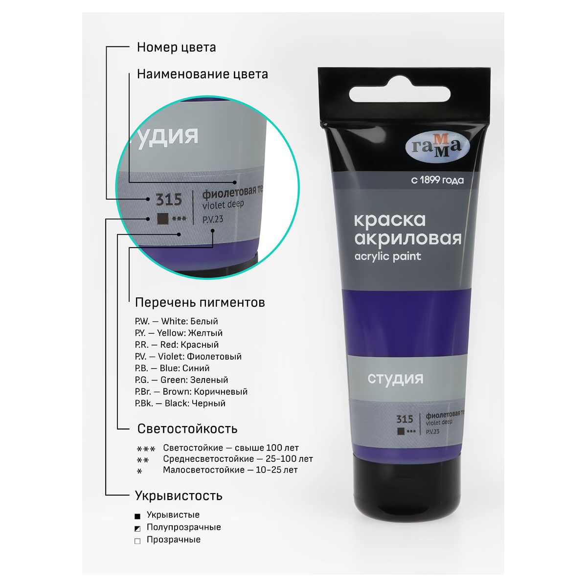 Краска акриловая художественная Гамма "Студия", 75мл, пластиковая туба, фиолетовая темная