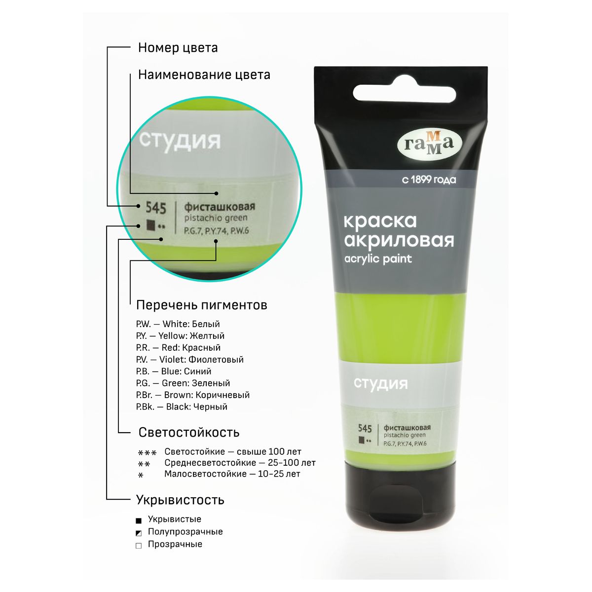 Краска акриловая художественная Гамма "Студия", 75мл, пластиковая туба, фисташковая