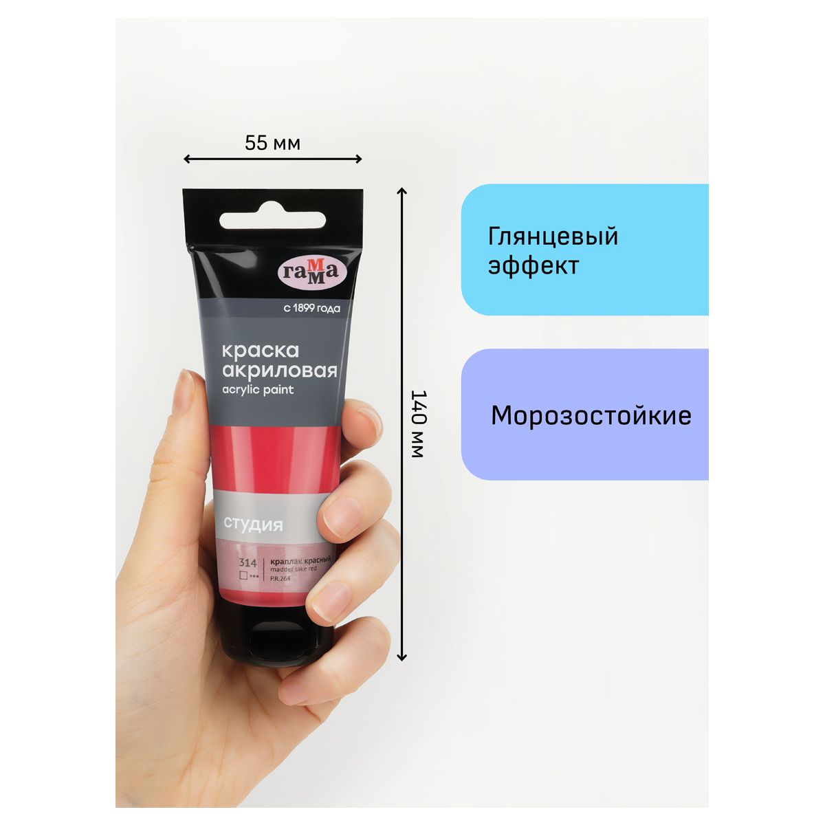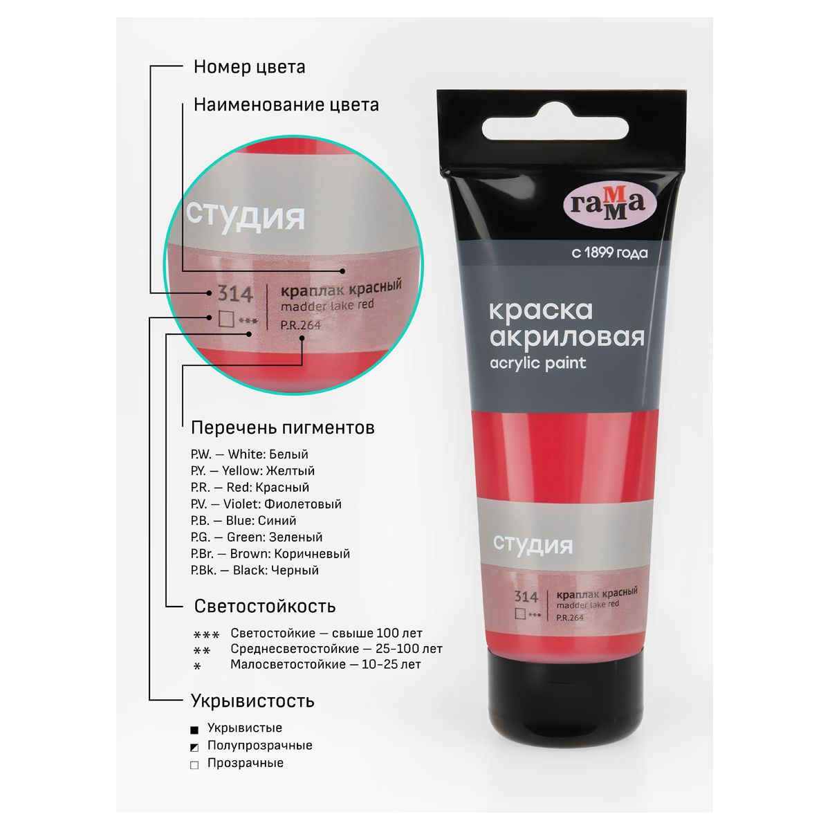 Краска акриловая художественная Гамма "Студия", 75мл, пластиковая туба, краплак красный