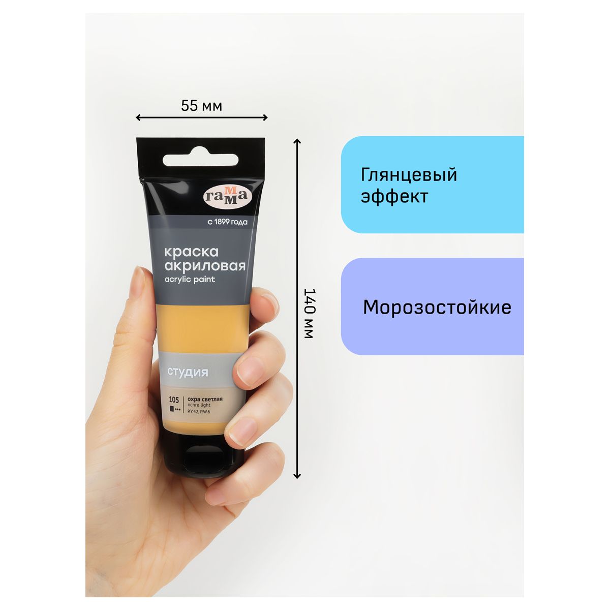 Краска акриловая художественная Гамма "Студия", 75мл, пластиковая туба, охра светлая