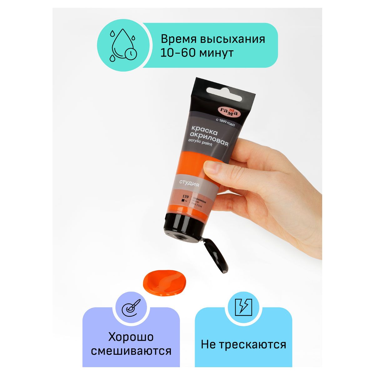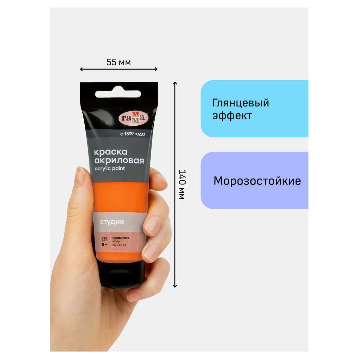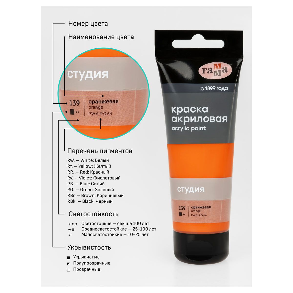Краска акриловая художественная Гамма "Студия", 75мл, пластиковая туба, оранжевая