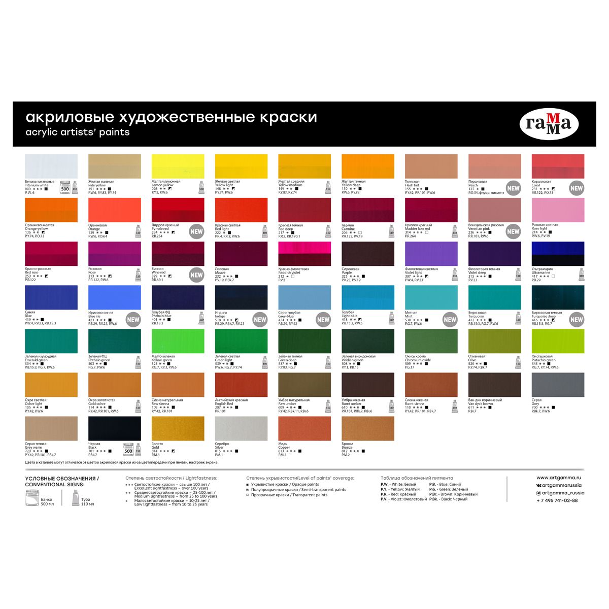 Акрил ГАММА отличается насыщенным цветом, густой консистенцией, высокой адгезией, прочностью красочного слоя. После высыхания краска становится глянцевой, практически не темнеет, специальная добавка позволяет максимально раскрыть красоту цвета. Художественный акрил прекрасно разносится и подходит для бумаги, картона, грунтованного холста, дерева, стекла, кожи, ткани. Время высыхания: от 10 минут до 1 часа в зависимости от толщины слоя. Прозрачный корпус тубы позволяет увидеть цвета красок, а удобная крышка флип-топ предотвращает высыхание.