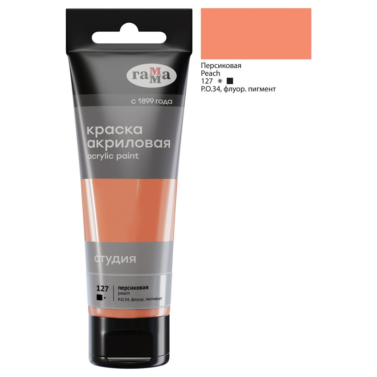 Краска акриловая художественная Гамма "Студия", 75мл, пластиковая туба, персиковая