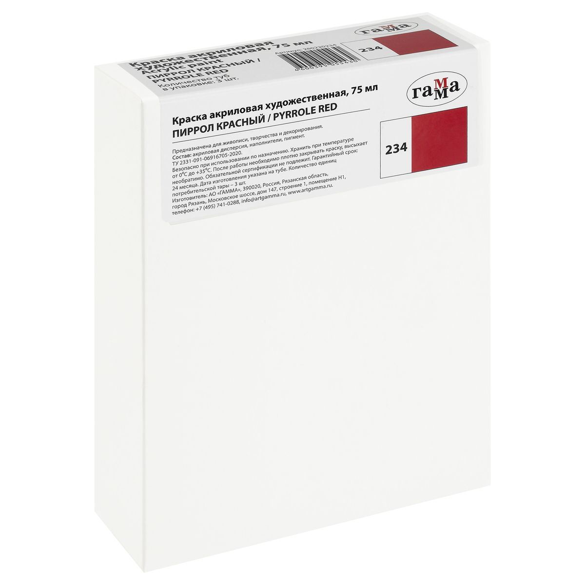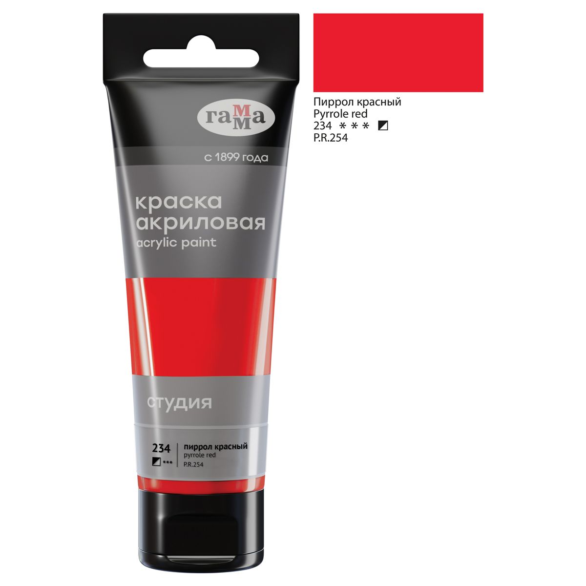 Краска акриловая художественная Гамма "Студия", 75мл, пластиковая туба, пиррол красный