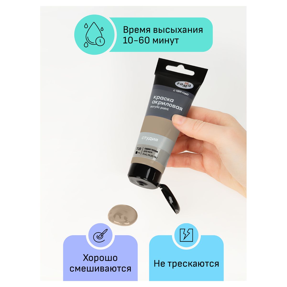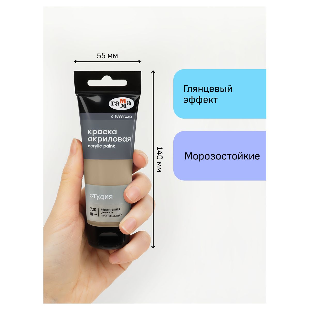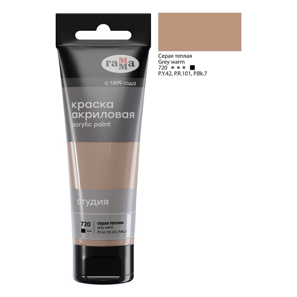 Краска акриловая художественная Гамма "Студия", 75мл, пластиковая туба, серая теплая