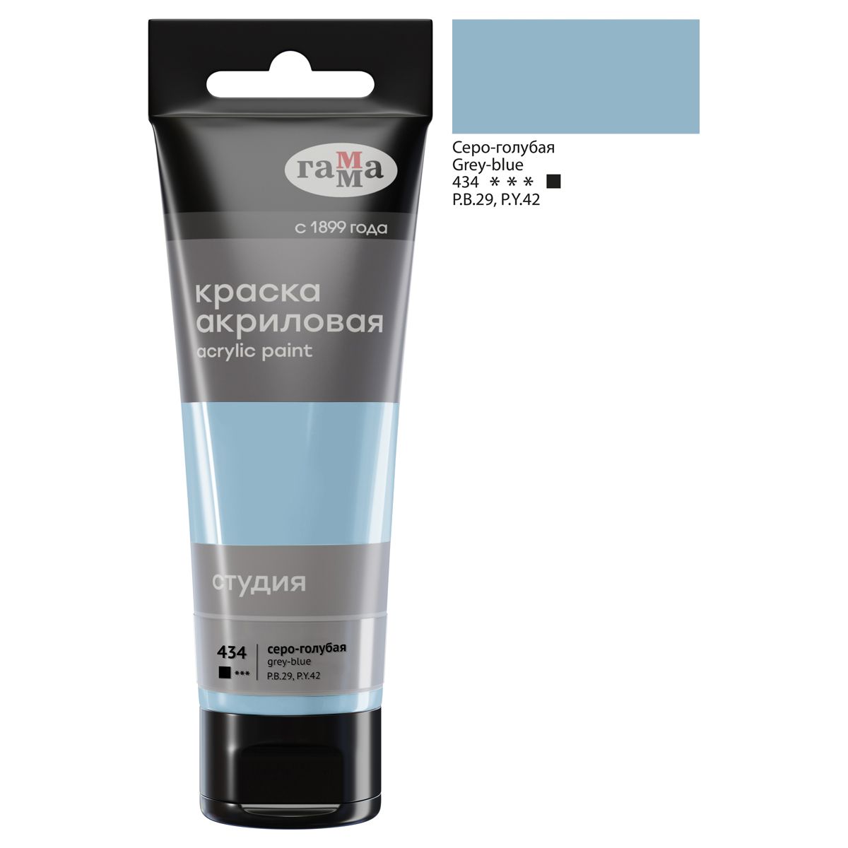 Краска акриловая художественная Гамма "Студия", 75мл, пластиковая туба, серо-голубая