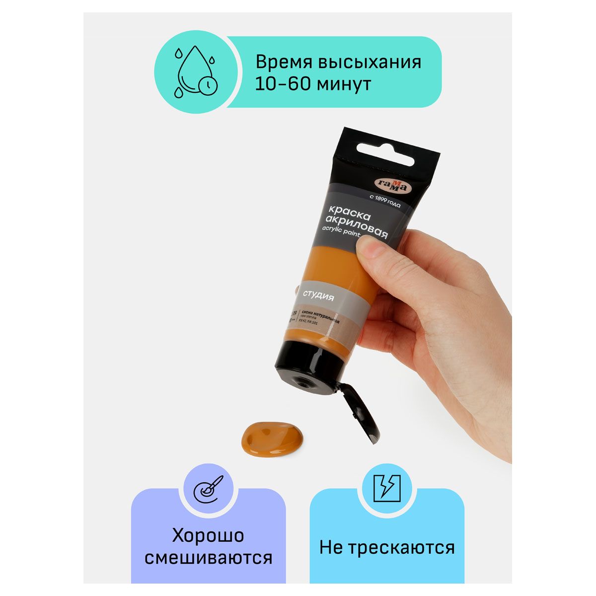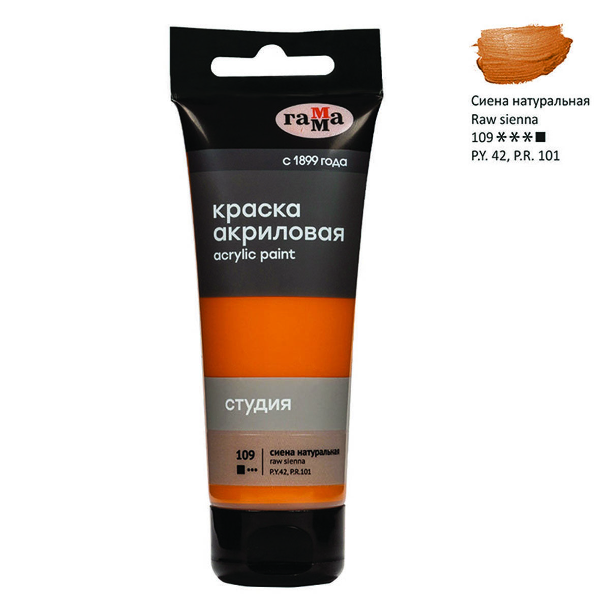 Краска акриловая художественная Гамма "Студия", 75мл, пластиковая туба, сиена натуральная