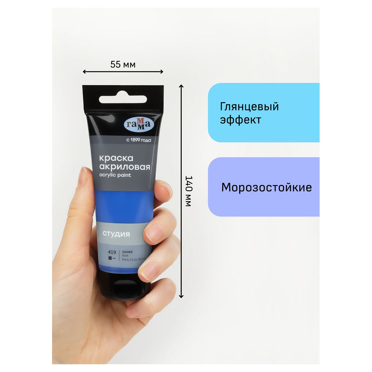Краска акриловая художественная Гамма "Студия", 75мл, пластиковая туба, синяя