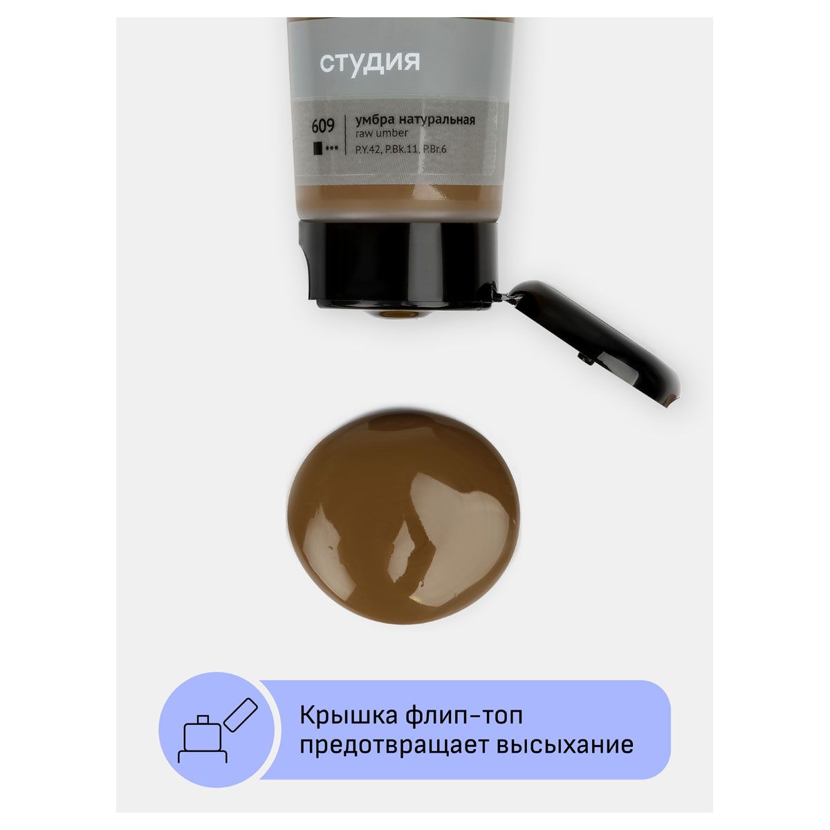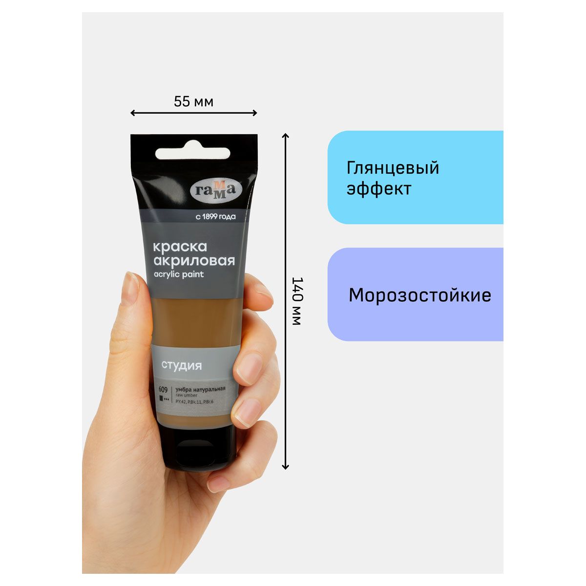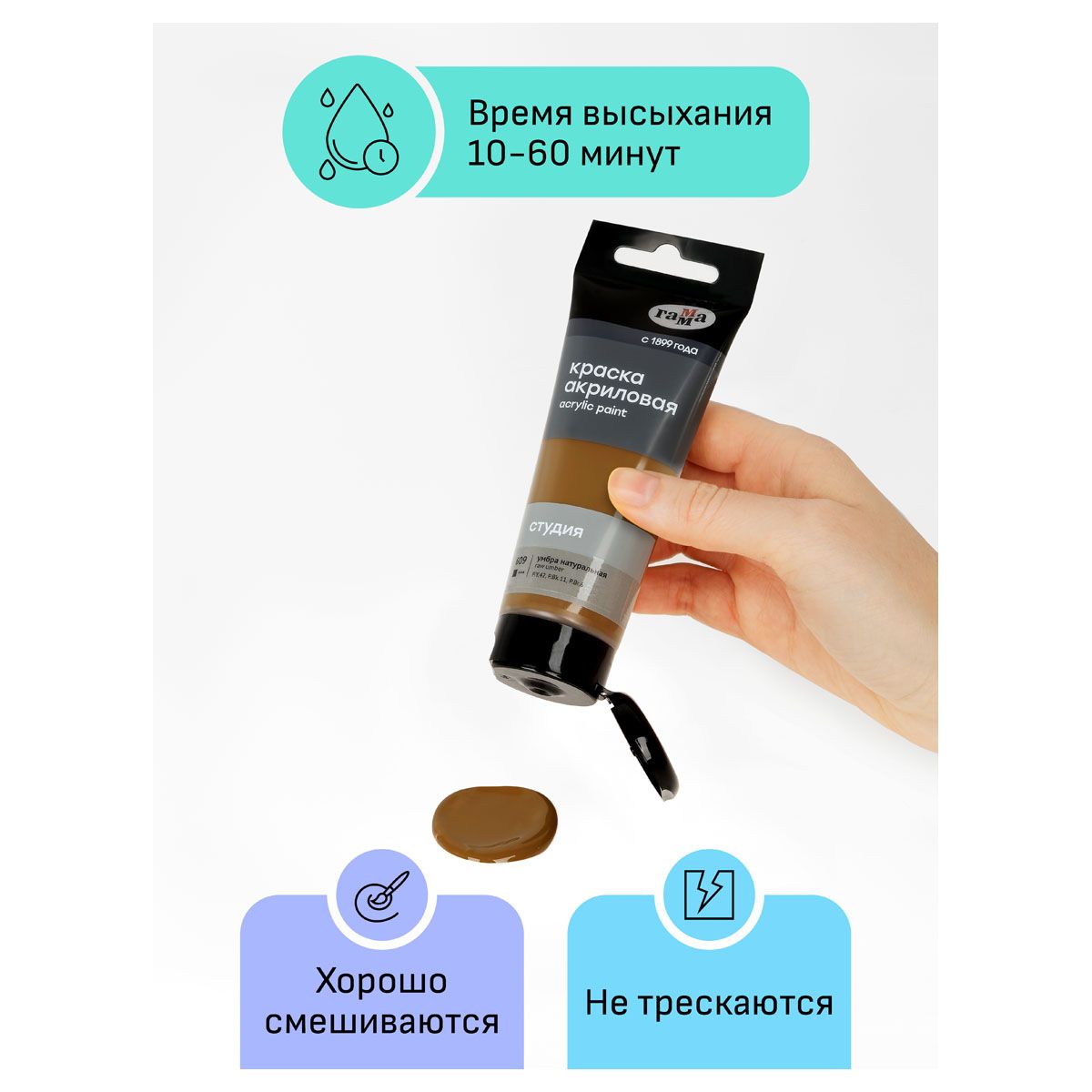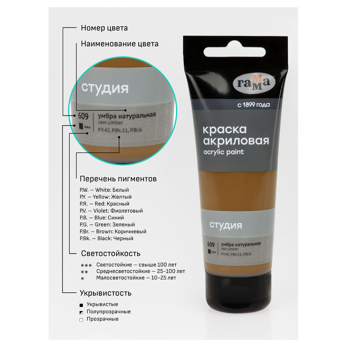 Краска акриловая художественная Гамма "Студия", 75мл, пластиковая туба, умбра натуральная