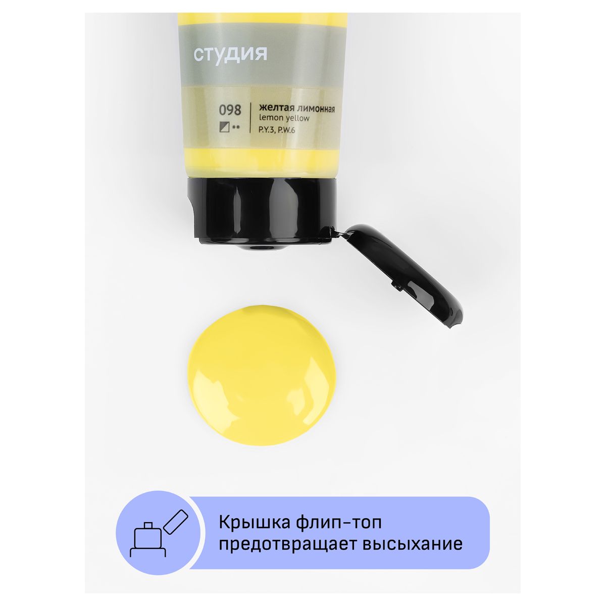 Краска акриловая художественная Гамма "Студия", 75мл, пластиковая туба, желтая лимонная