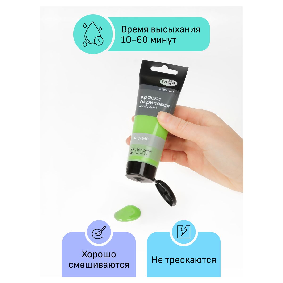 Краска акриловая художественная Гамма "Студия", 75мл, пластиковая туба, желто-зеленая