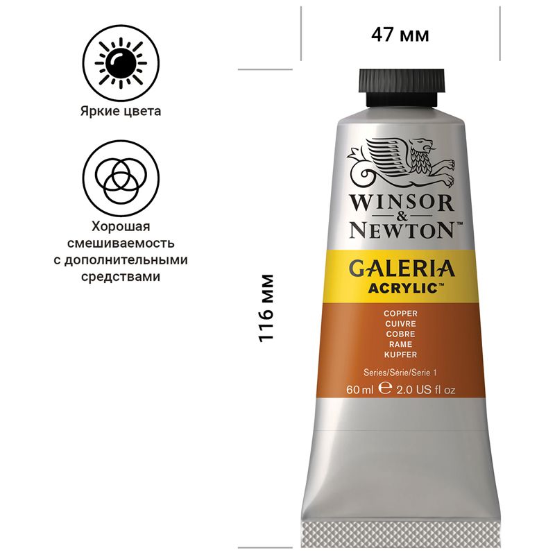 Краска акриловая художественная Winsor&Newton "Galeria", 60мл, туба, медный