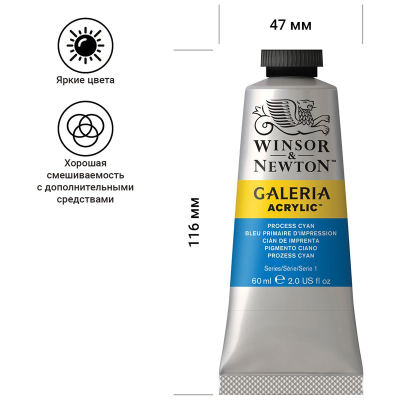 Краска акриловая художественная Winsor&Newton "Galeria", 60мл, туба, обработанный голубой