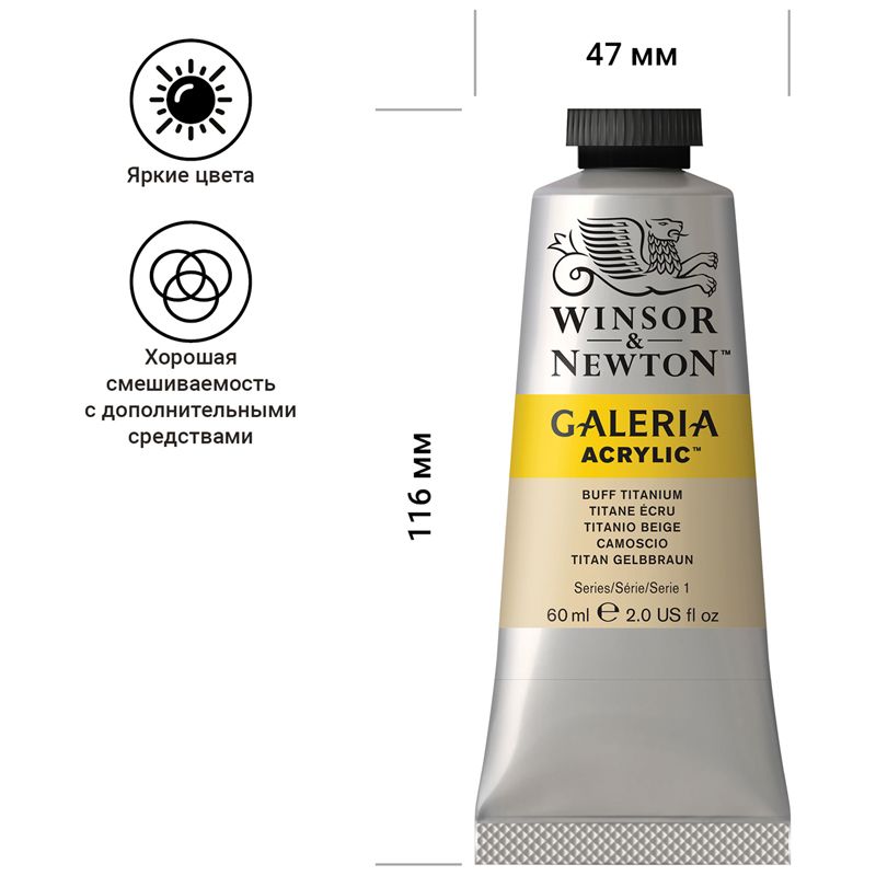 Краска акриловая художественная Winsor&Newton "Galeria", 60мл, туба, темно-желтый титан