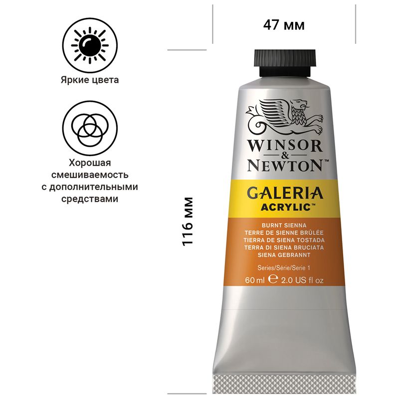 Краска акриловая художественная Winsor&Newton "Galeria", 60мл, туба, жженая сиена