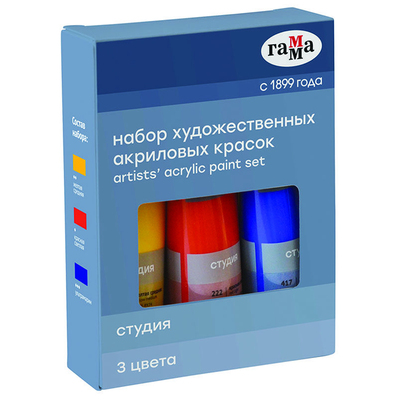 Краски акриловые художественные Гамма "Студия", 03цв., 75мл/туба, картон. упаковка