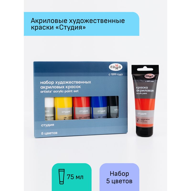 Краски акриловые художественные Гамма "Студия", 05цв., 75мл/туба, картон. упаковка