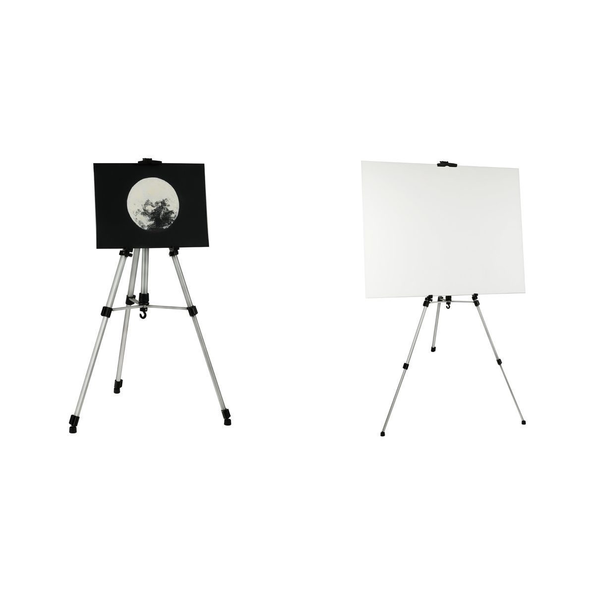 Лёгкий и прочный мольберт оснащён поворотной мачтой, которую можно трансформировать в горизонтальное положение, телескопические ножки легко раскладываются, а пластиковые опоры обеспечивают устойчивость даже на неровной поверхности. Главной особенностью является то, что мольберт подходит для акварельной живописи и техник «по-сырому». Изготовлен из алюминия. Чехол для бережного хранения и удобной транспортировки — в комплекте.