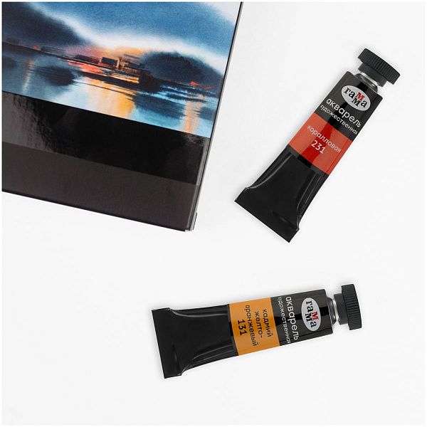 • Формат упаковки — тюбики удобны для работы в студии, сухие акварели — для мобильного использования и пленэра.