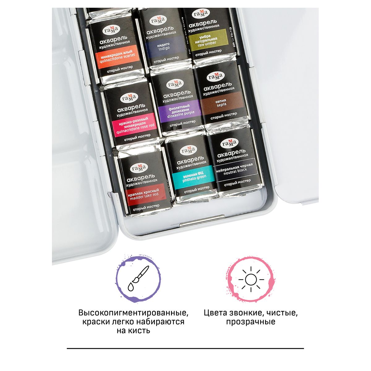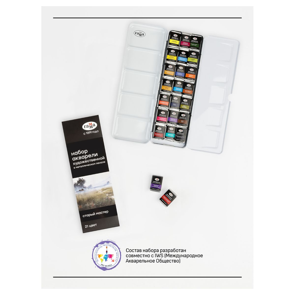 Акварель художественная Гамма "Старый Мастер", 21цв*2,6мл, кюветы, метал. коробка