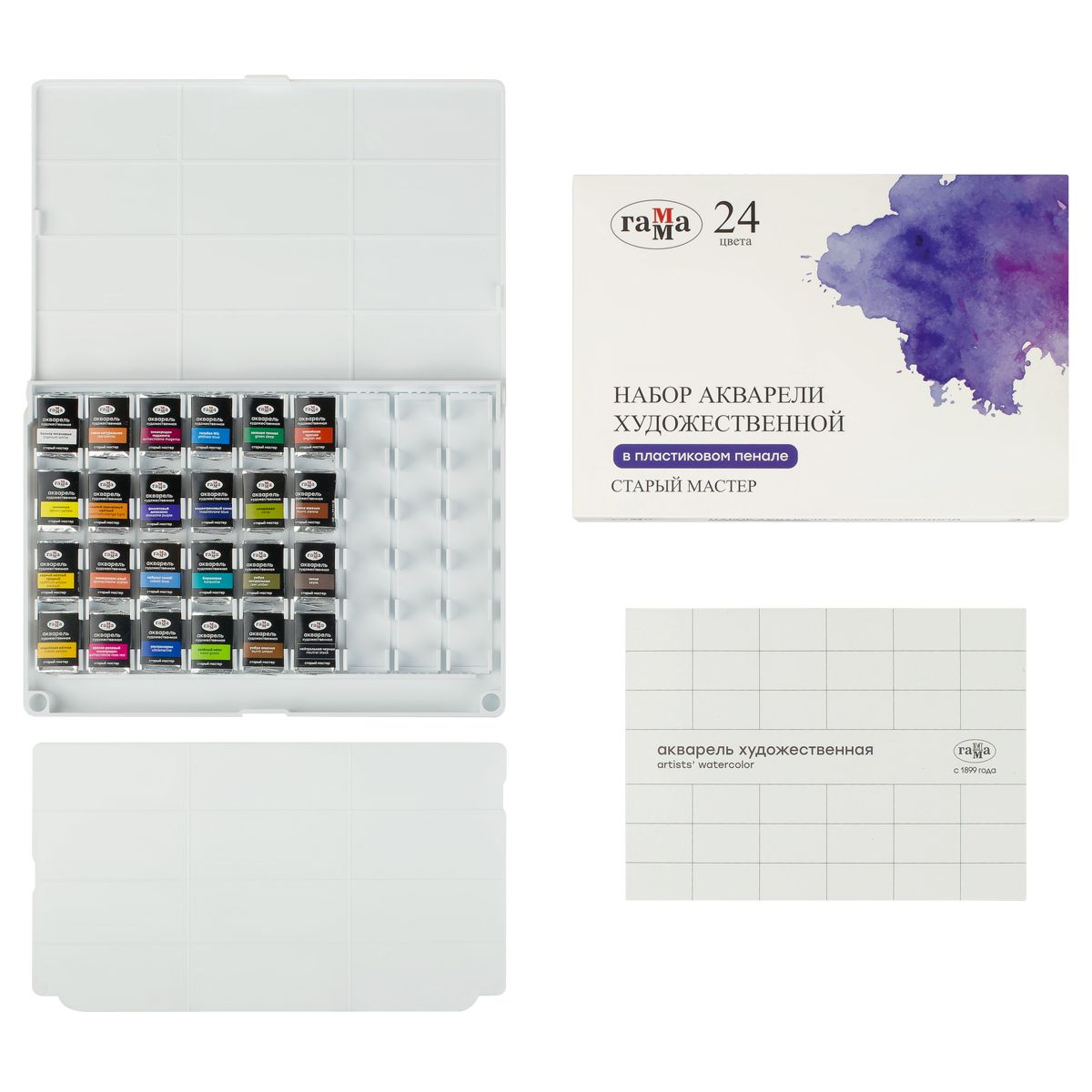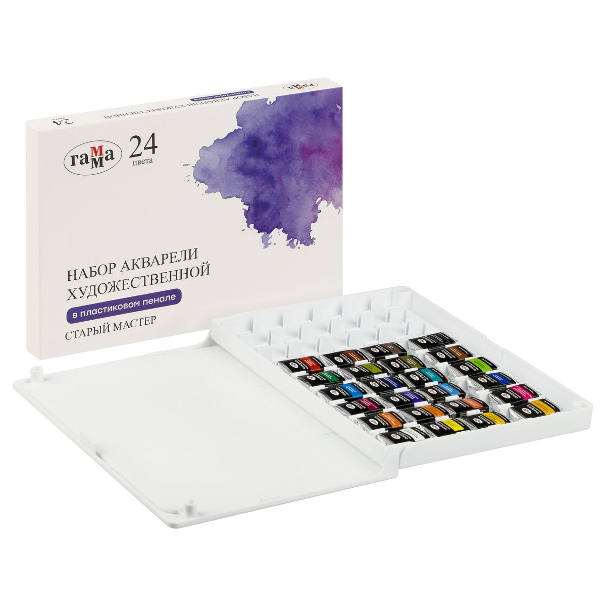 Акварель художественная Гамма "Старый Мастер", 24цв*2,6мл. пластик. пенал