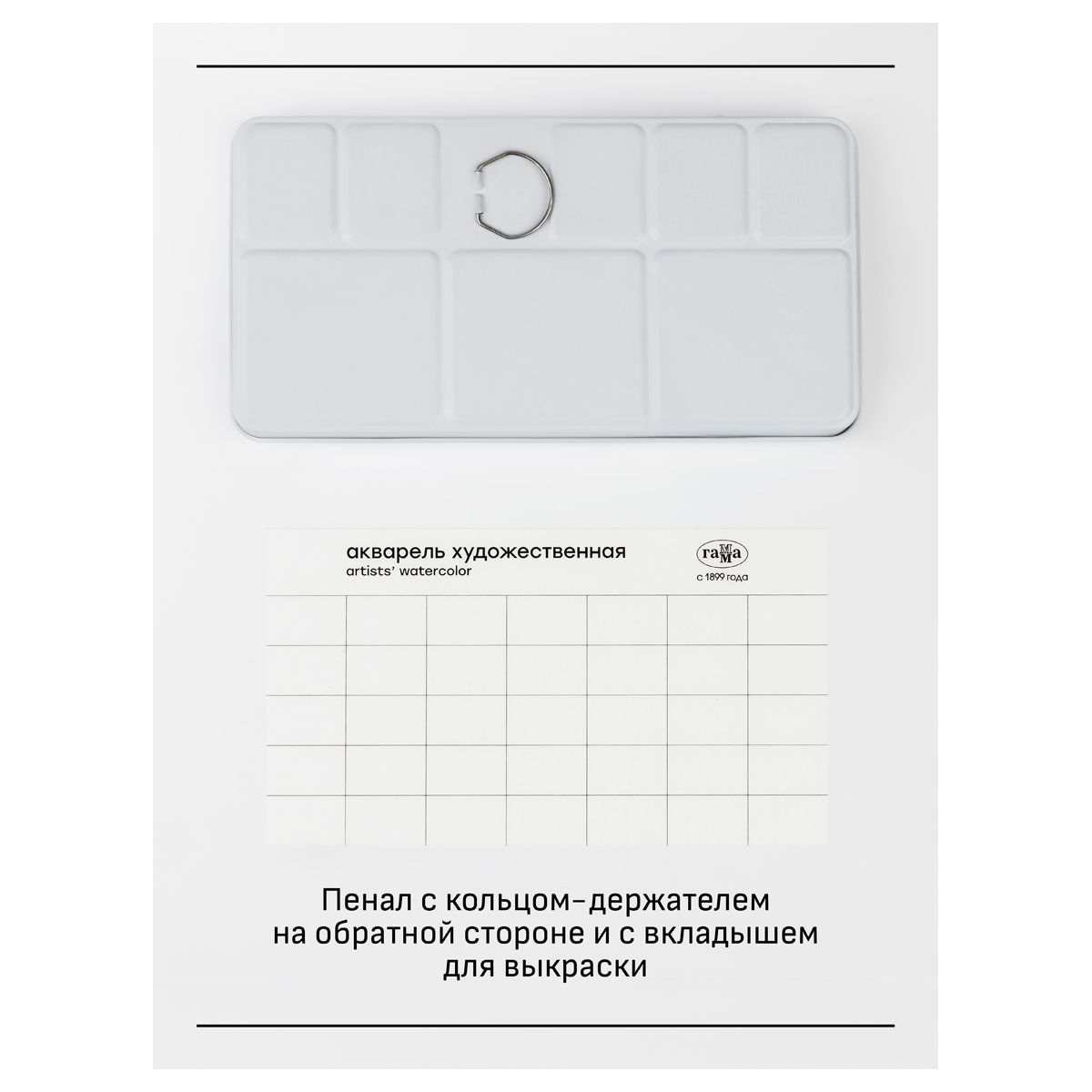Набор представлен в металлическом пенале с удобными креплениями кювет, палитрой и кольцом-держателем на обратной стороне. Иллюстрация для упаковки предоставлена Ильёй Ибряевым.