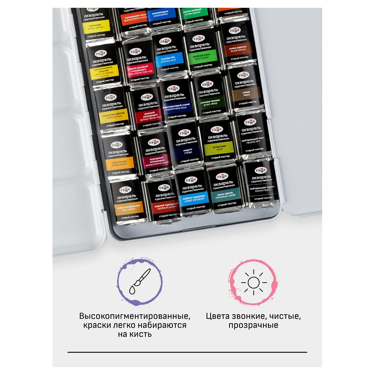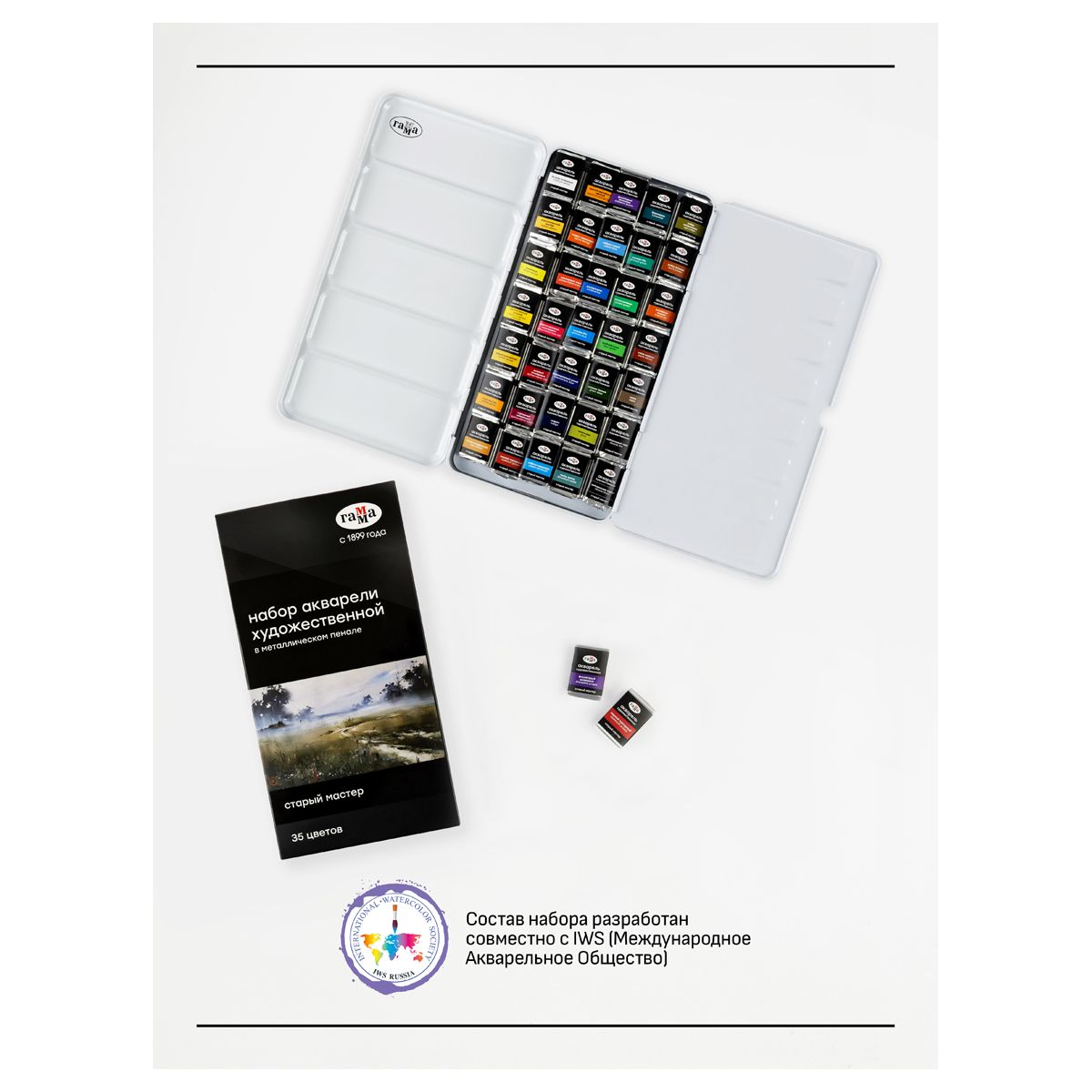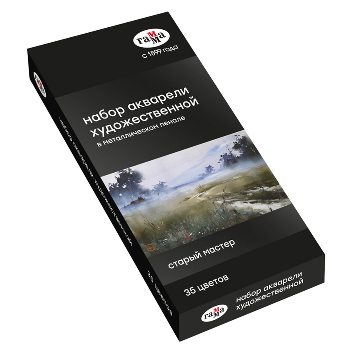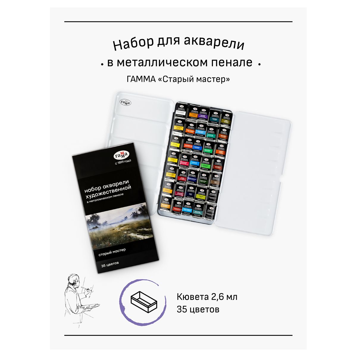 Акварель художественная Гамма "Старый Мастер", 35цв*2,6мл, кюветы, метал. коробка