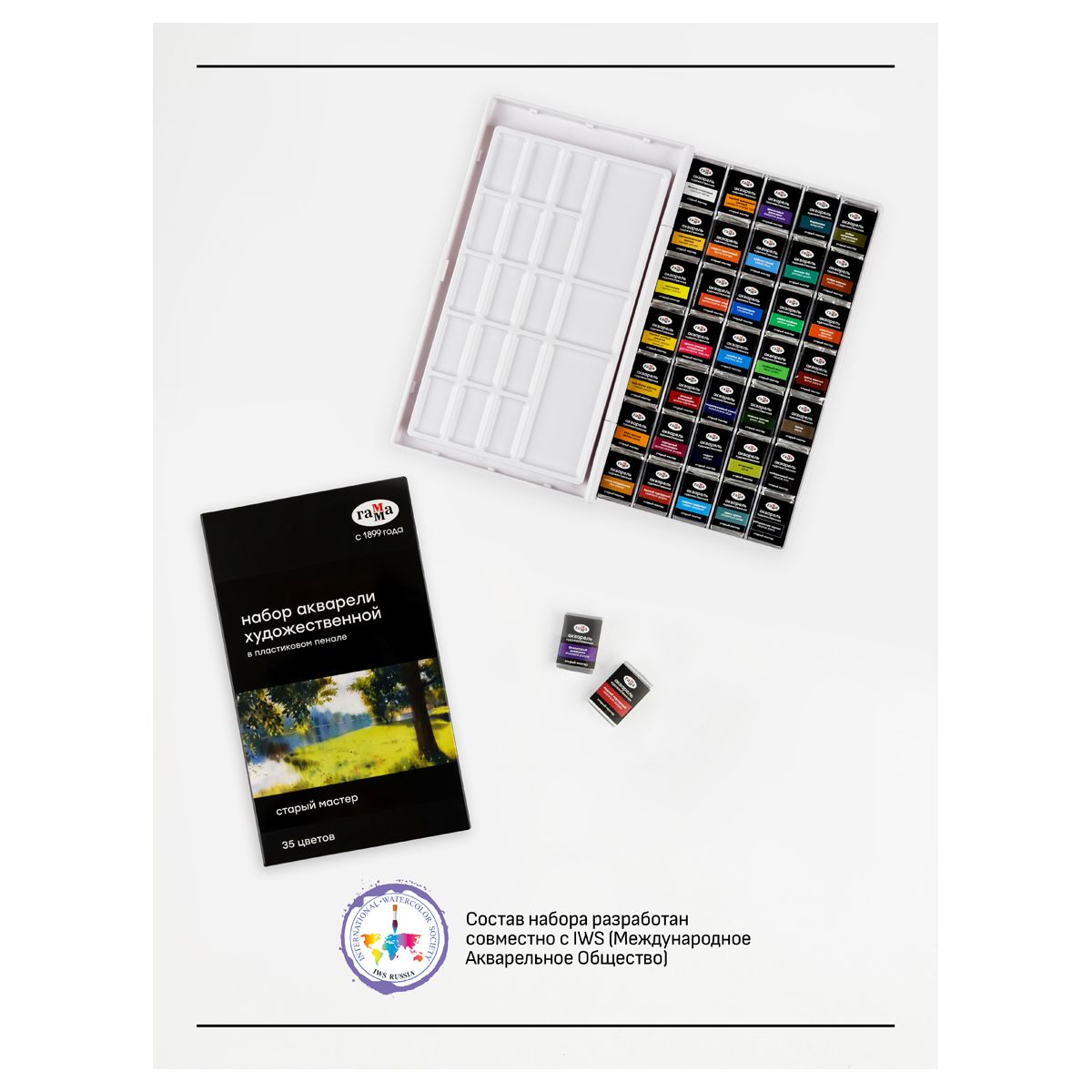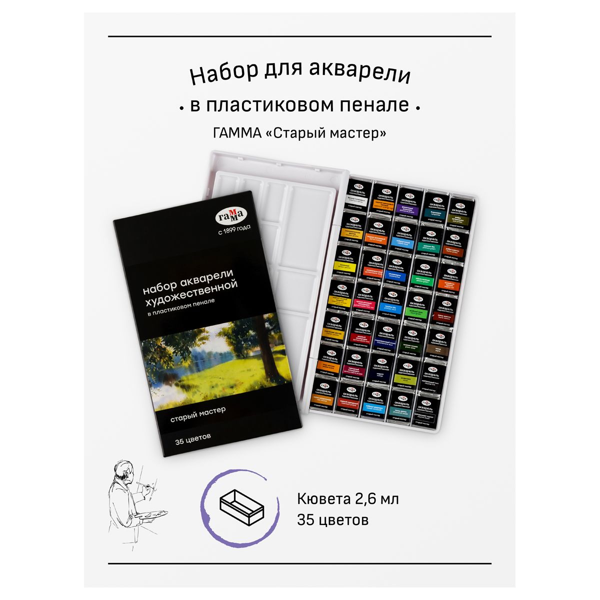 Акварель художественная Гамма "Старый Мастер", 35цв*2,6мл, кюветы, пластик. коробка
