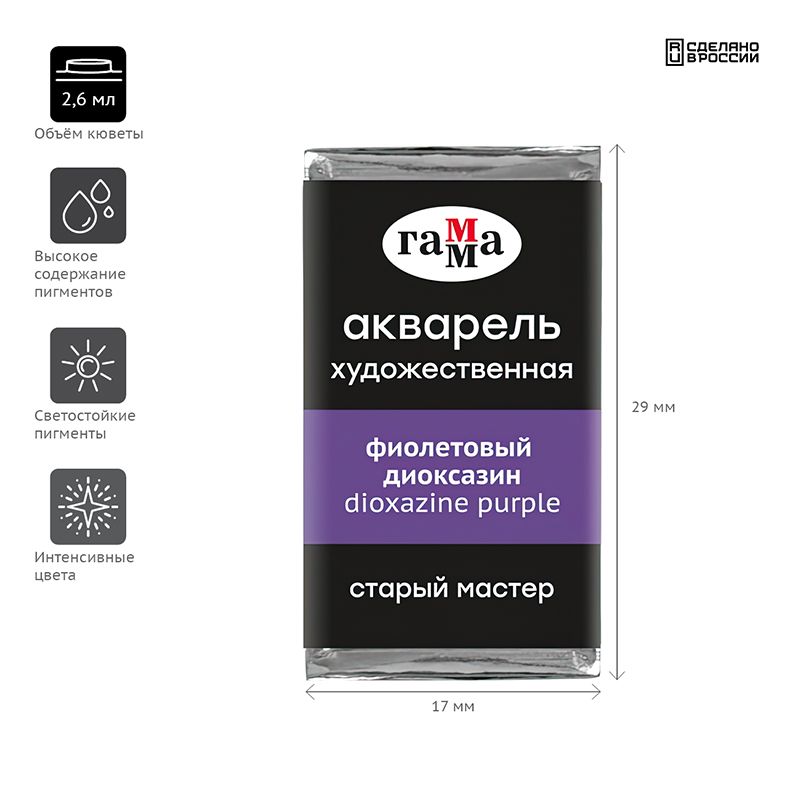 Акварель художественная Гамма "Старый Мастер" фиолетовый диоксазин, 2,6мл, кювета